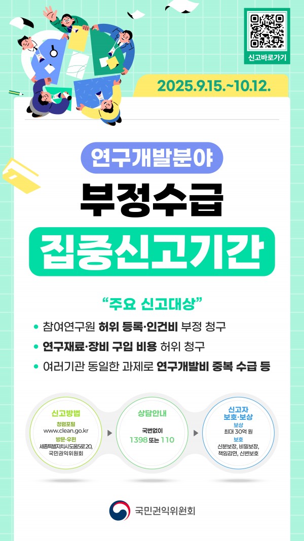 [국민권익위원회] 연구개발비 부정수급 집중신고기간 운영(2025.09.15~10.12)